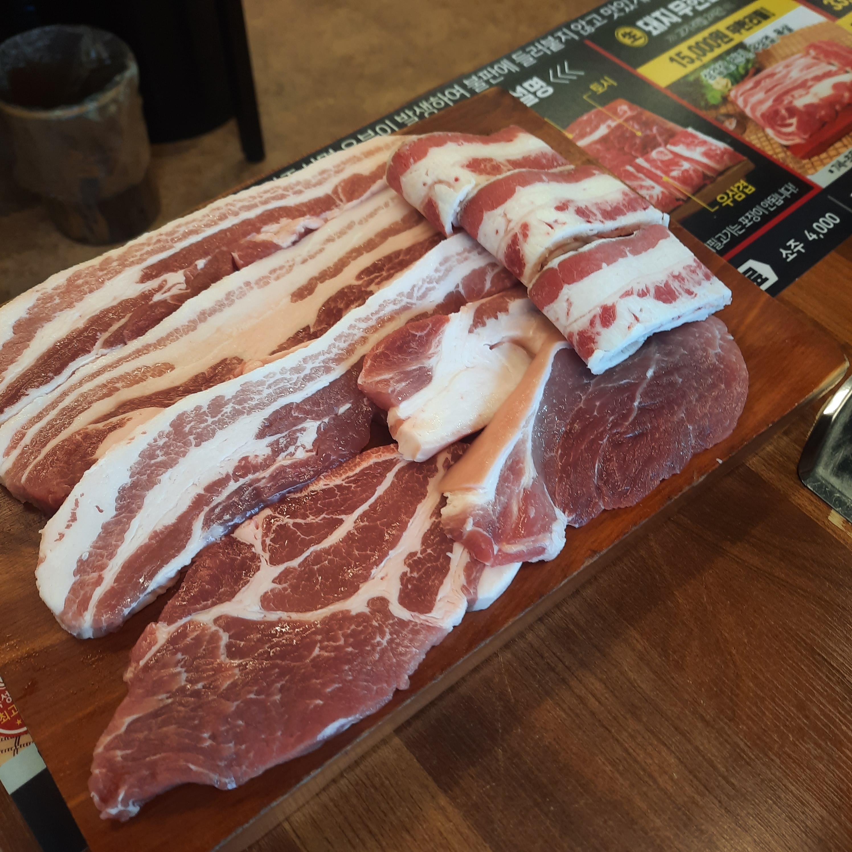 삼겹살과 목살 그리고 우삼겹이 나온다. 기름진 부위와 살코기 부분을 한번에 먹을 수 있어서 좋았다.