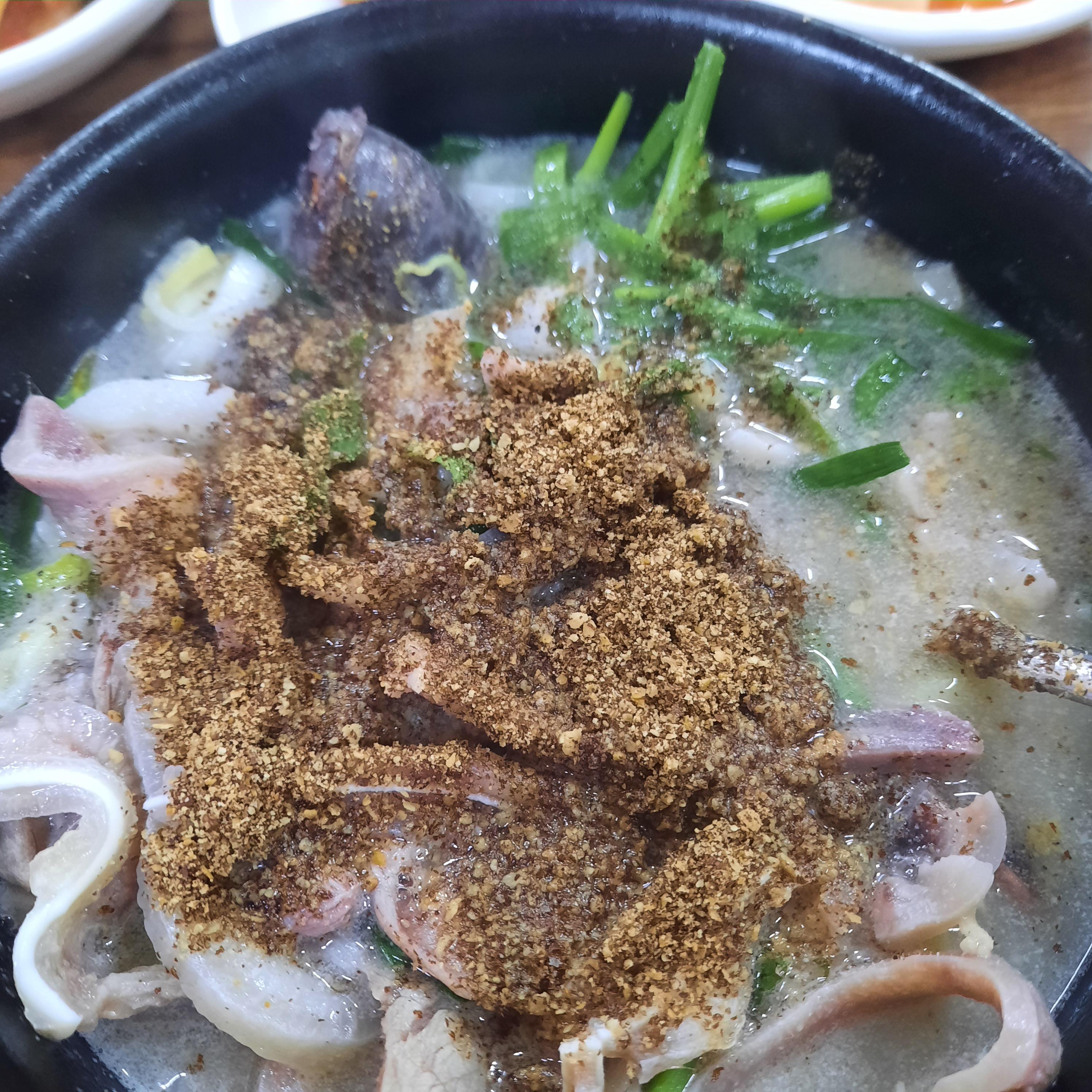 남들은 돼지냄새 없애려고 들깨가루 뿌려먹는다 하는데 나는 들깨가루를 그냥 좋아한다. 미역국에도 들깨가루 넣어먹고, 들깨칼국수 좋아하고, 들깨가루가 없는 돼지국밥집은 싫다 ㅜㅜ