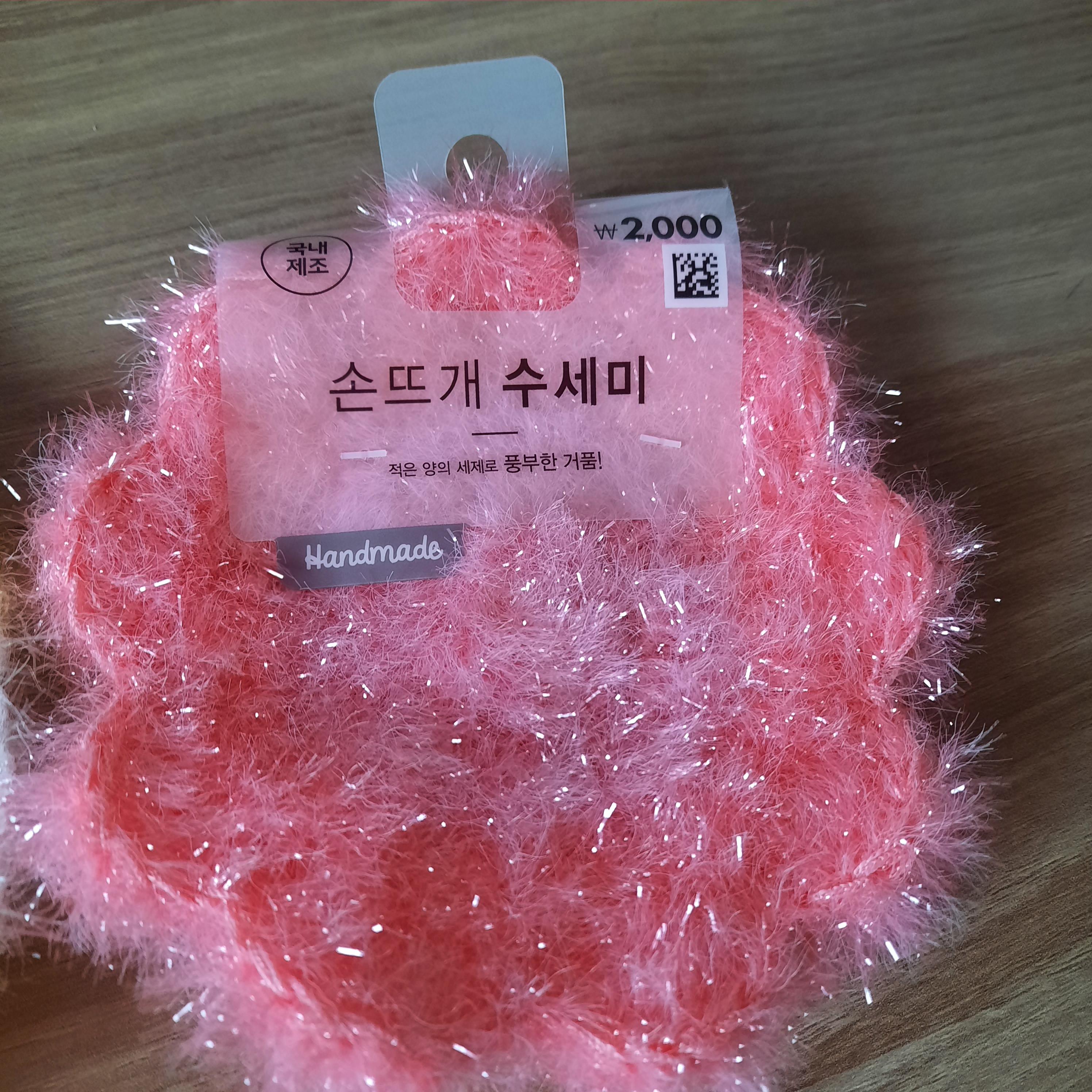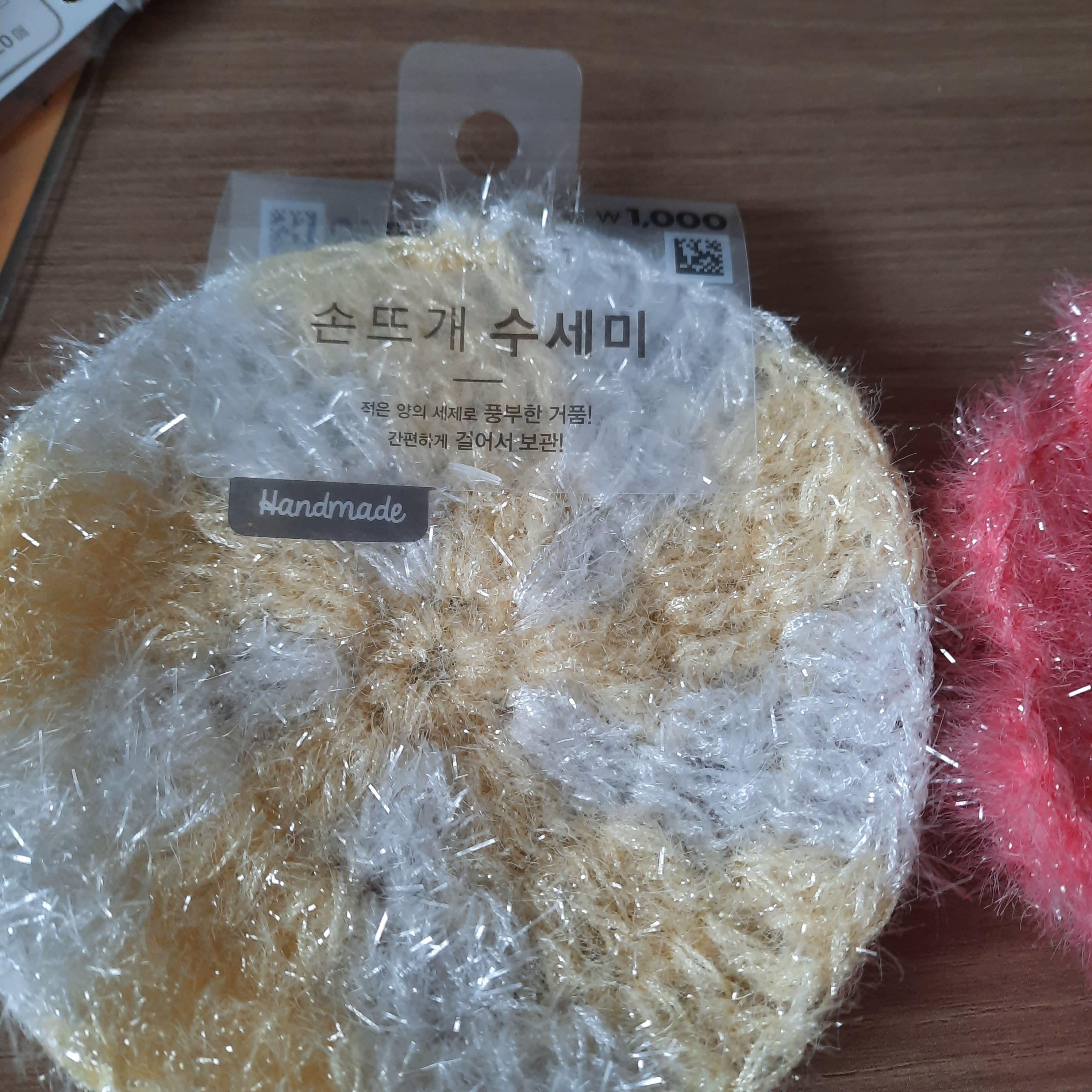 손뜨개 수세미 . 이건 제조국이 중국인데 국산보다 훨씬 얇다. 행굼용 수세미로 사용! 얇음.