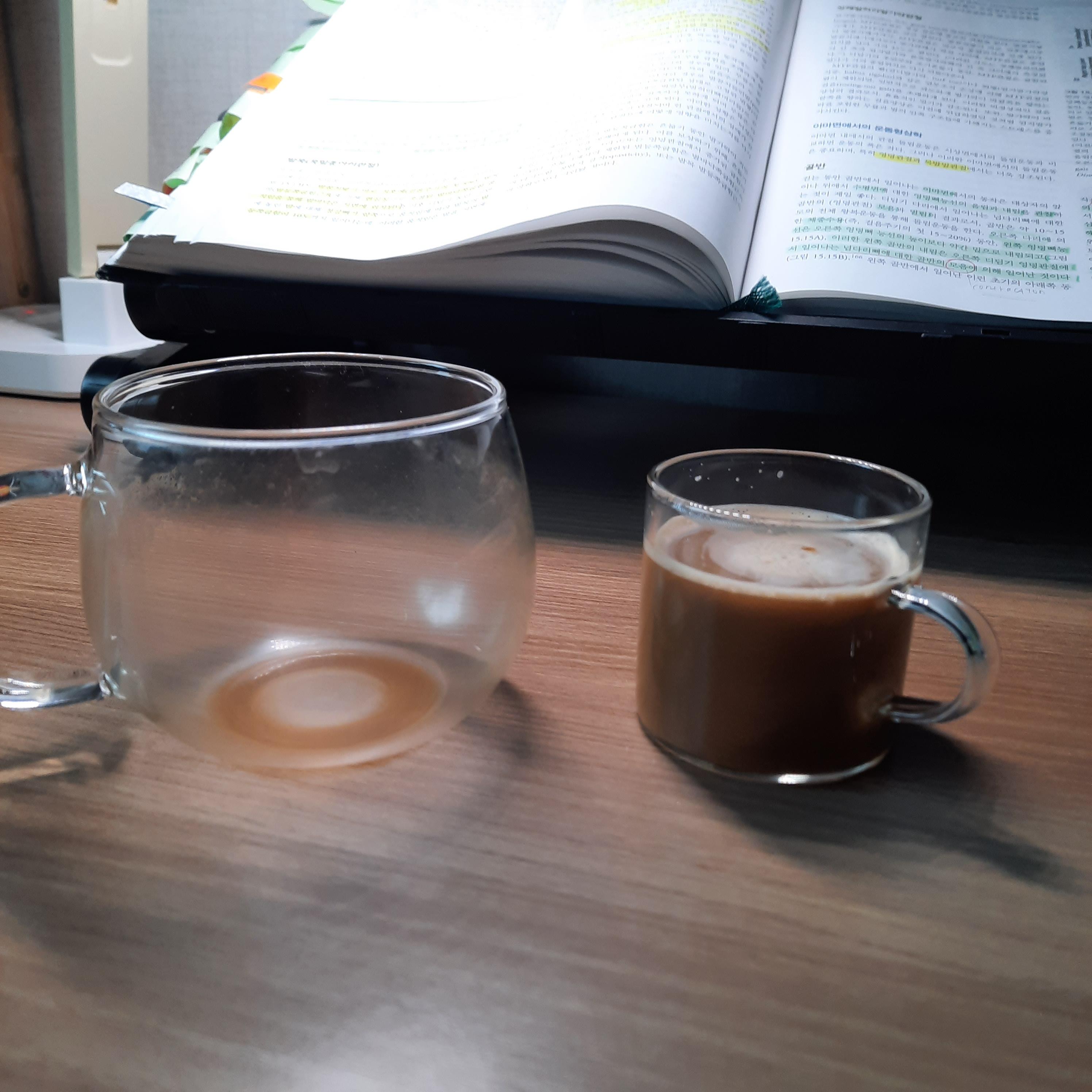 집에는 433ml? 짜리 내열 컵 하나가 있는데 아메리카노 마실 때는 큰 잔에 ㅋ.ㅋ 믹스커피 마실 때는 작은 잔에 ㅋ.ㅋ