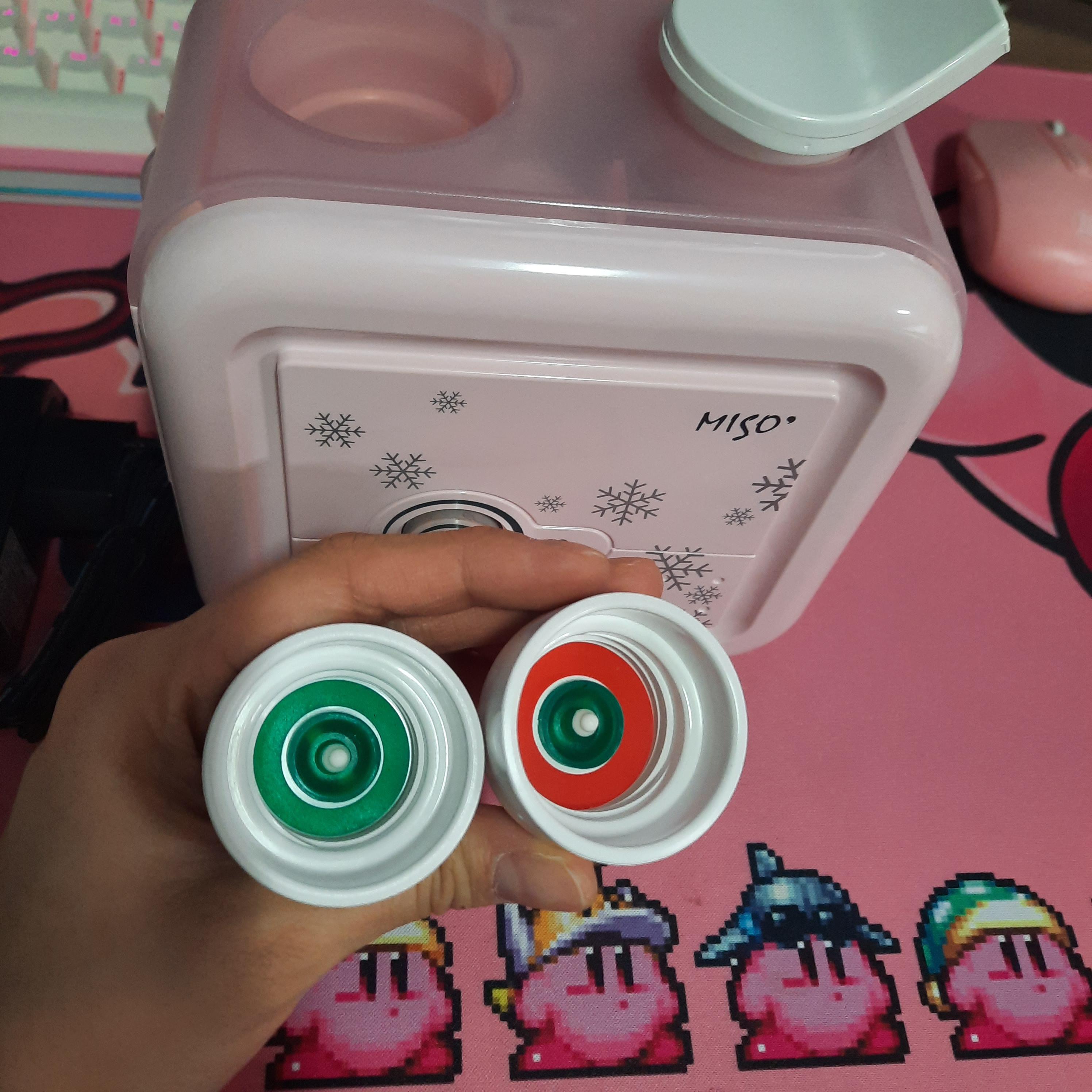 일반 시중에 파는 탄산수 페트병, 생수병의 입구와 동일 규격이다. 초록색 고무가 팩킹된 입구를 사용하면 된다. 나머지 큰 사이즈 입구용(빨간색)은 한번도 써본적이 없다... 내가 생각하는 페트병의 입구가 큰 것은 게토레이 정도라 생각했는데 게토레이 안들어갈 것 같음ㅇㅇ..