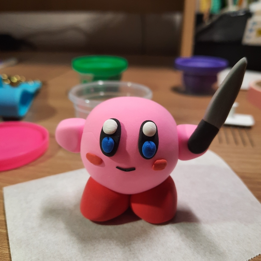 중국에서 온 커비 키링에 피규어를 다 빼서 세워두려고 했는데 애들이 다 제 발로 서질못해 만만한게 클레이라 그걸로 발받침을 만들었다. 이 때 남은걸로 커비 하나를 만듦ㅋㅋㅋ